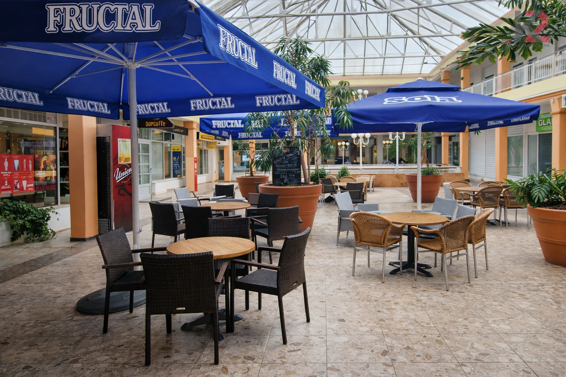 Velikost: 34,6 m² (notranji lokal) + 120 m² (zunanja pokrita terasa znotraj kompleksa PC Sonce)