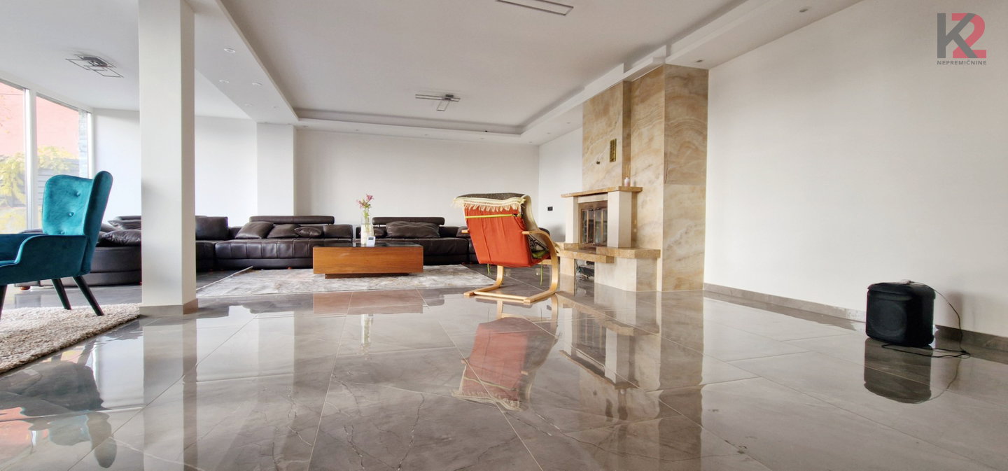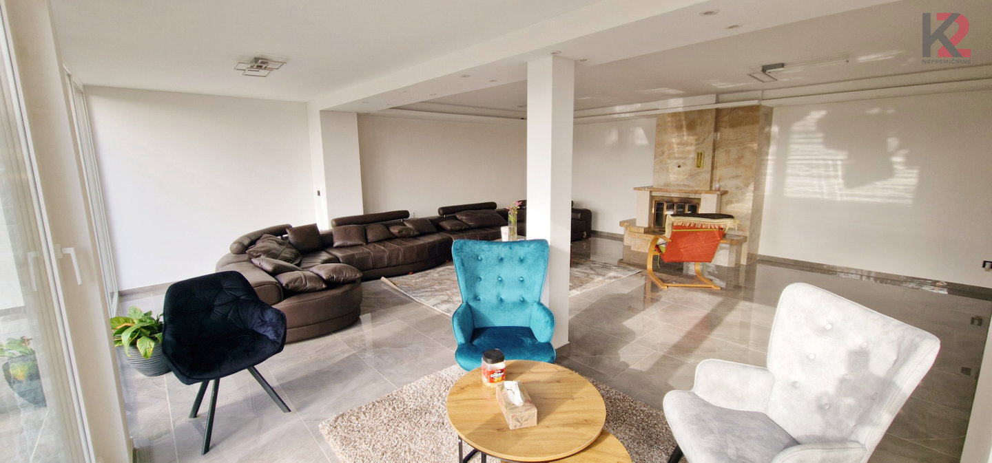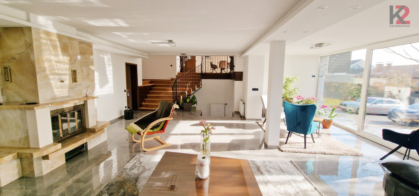 • Velika dnevna soba s kaminom in izhodom na teraso