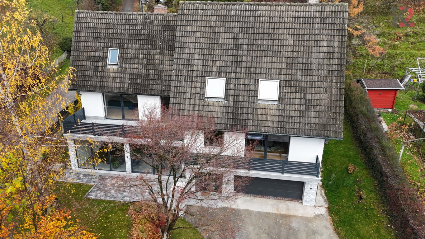 Hiša je dvostanovanjska, medetažno zasnovana (K + P + 1N + M), skupne bruto površine 434,2 m² in neto površine 388,5 m². Zgrajena je bila leta 1986, popolnoma prenovljena leta 2025 (nova fasada, okna, prenovljena notranjost). Stoji na urejeni parceli velikosti 780 m².